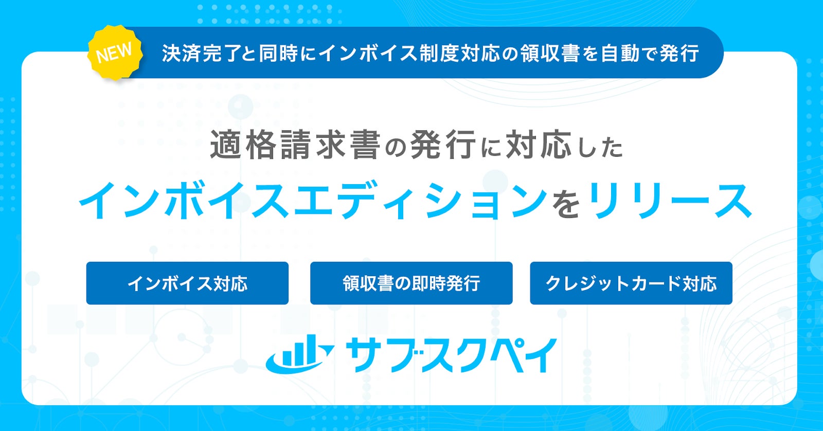 適格請求書の発行に対応した「サブスクペイ インボイスエディション」をリリース