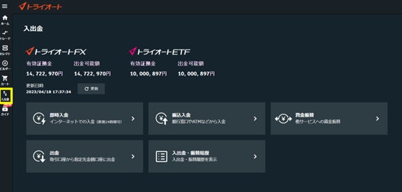 トライオートの取引画面から入金ができる機能を追加いたします。