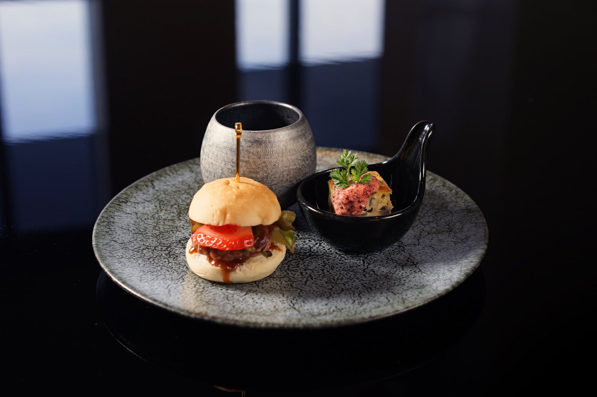 ・甘酸っぱいいちごソースと国産牛のミニバーガー
