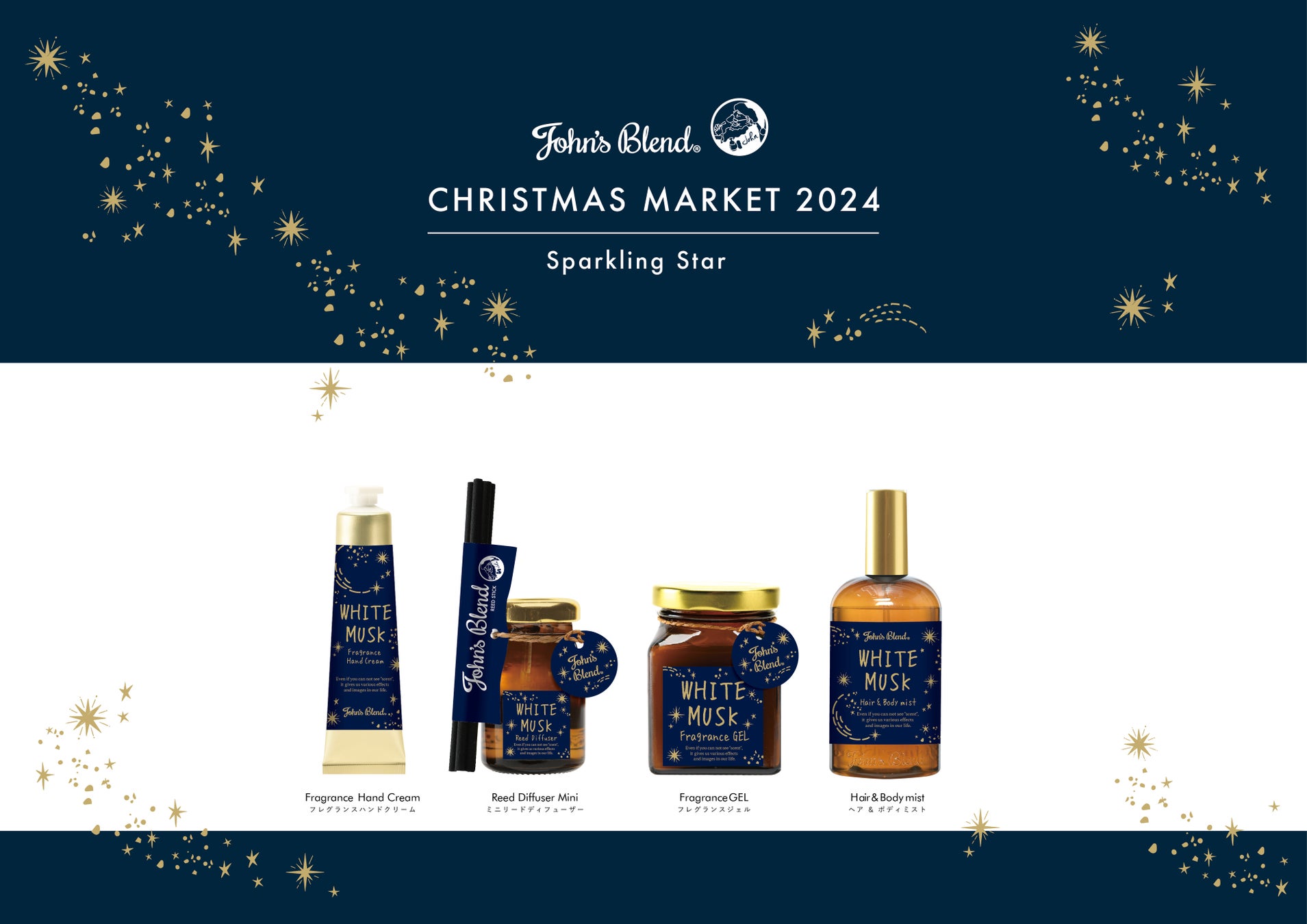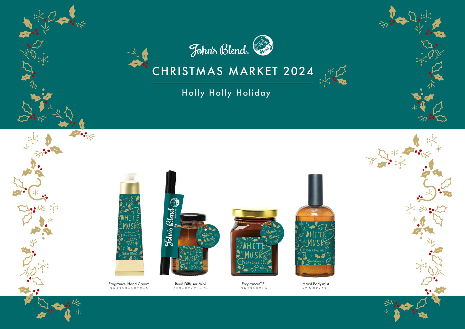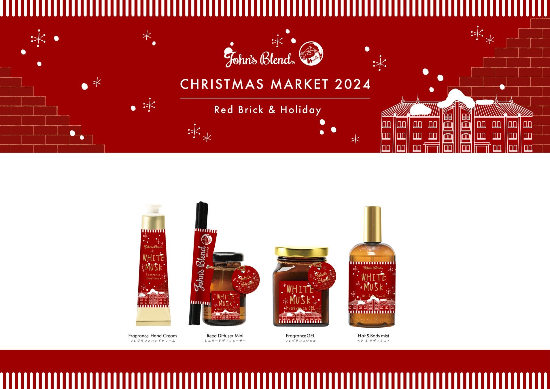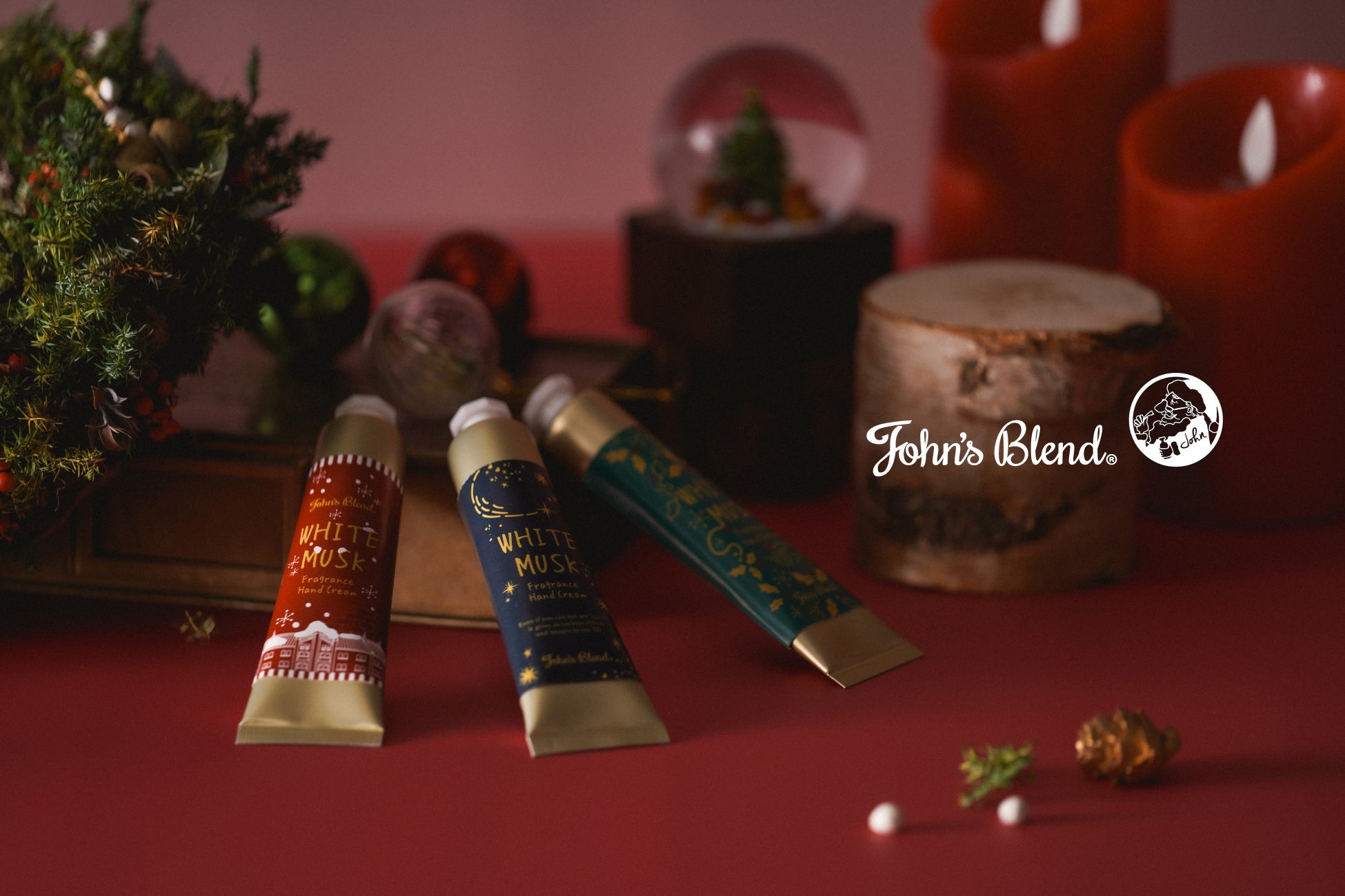 John's Blend人気のフレグランス&ボディケアアイテムがクリスマスの装いに。テーマがそれぞれ異なる3種のデザインは、クリスマスマーケットブースにて限定発売します。