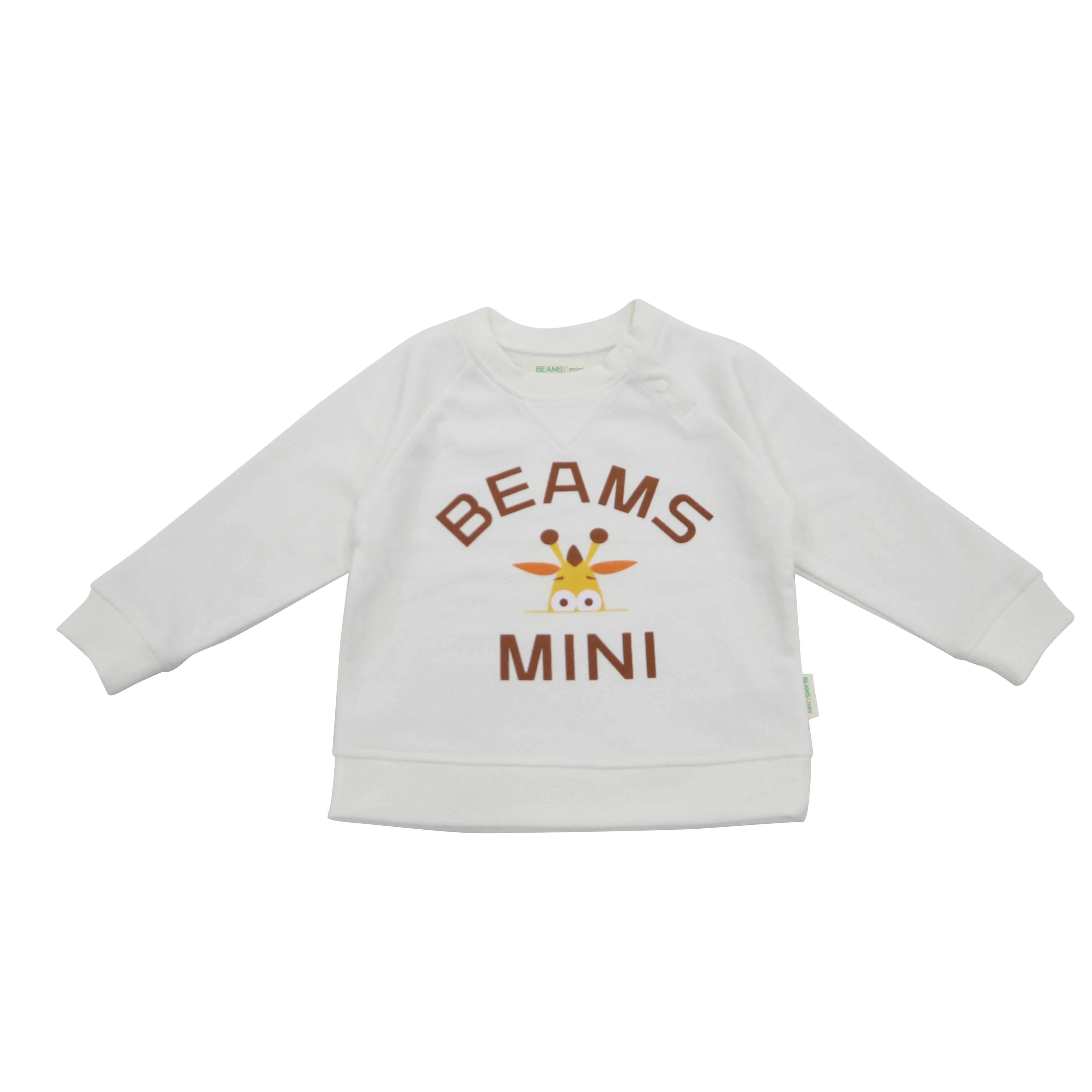 このたび販売を開始する商品は、ボーダーの長袖Tシャツ、チェックシャツ、ラグラン長袖Tシャツやトレーナーのほか、トイザらスの公式キャラクター、キリンの“ジェフリー”をカレッジロゴ風のデザインに取り入れたトレーナーなど、オーセンティックなアメリカンカジュアルウェアのテイストを表現した全13アイテムとなっています。各商品80cm、90cm、95cmの3サイズ展開で販売いたします。ベビーザらスの子ども服ラインナップより、新たな色味とスタイルを提案する『BEAMS miniベビーザらス限定コレクション』をぜひお楽しみください。