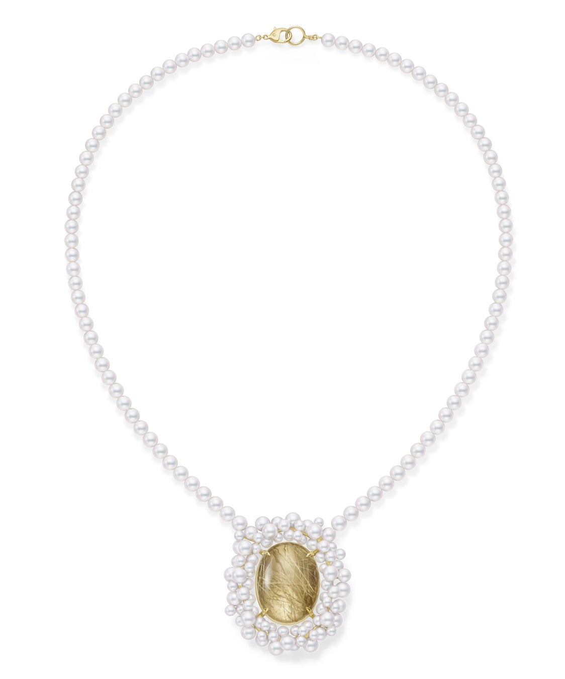 ニコロ・パスカレッティが追い求める、多様な要素が調和することで生まれるありのままの自然を切り取った「PASSEL(パッセル)」は、ルチルクォーツに内包された金色に輝くルチルが不変的な太陽の光のエネルギーを感じさせ、それを取り巻くようにランダムに配された無数のパールによって、美しく尊い多くの命の躍動を抽象的な解釈で昇華した、唯一無二のジュエリーです。