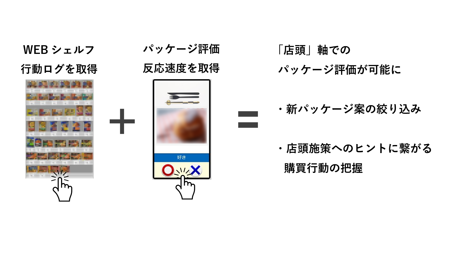 コロナ禍により、様々なオフライン調査がオンラインに代替されてきましたが、単純にオンラインに置き換えただけの調査では、実際の買われ方と差が生じることもあります。一方で、模擬棚などを作るオフライン調査では時間や場所の制約に加え、詳細な行動データの取得が難しいといった課題もあります。商品パッケージ評価調査もそのうちの一つで、様々な調査手法が模索されています。