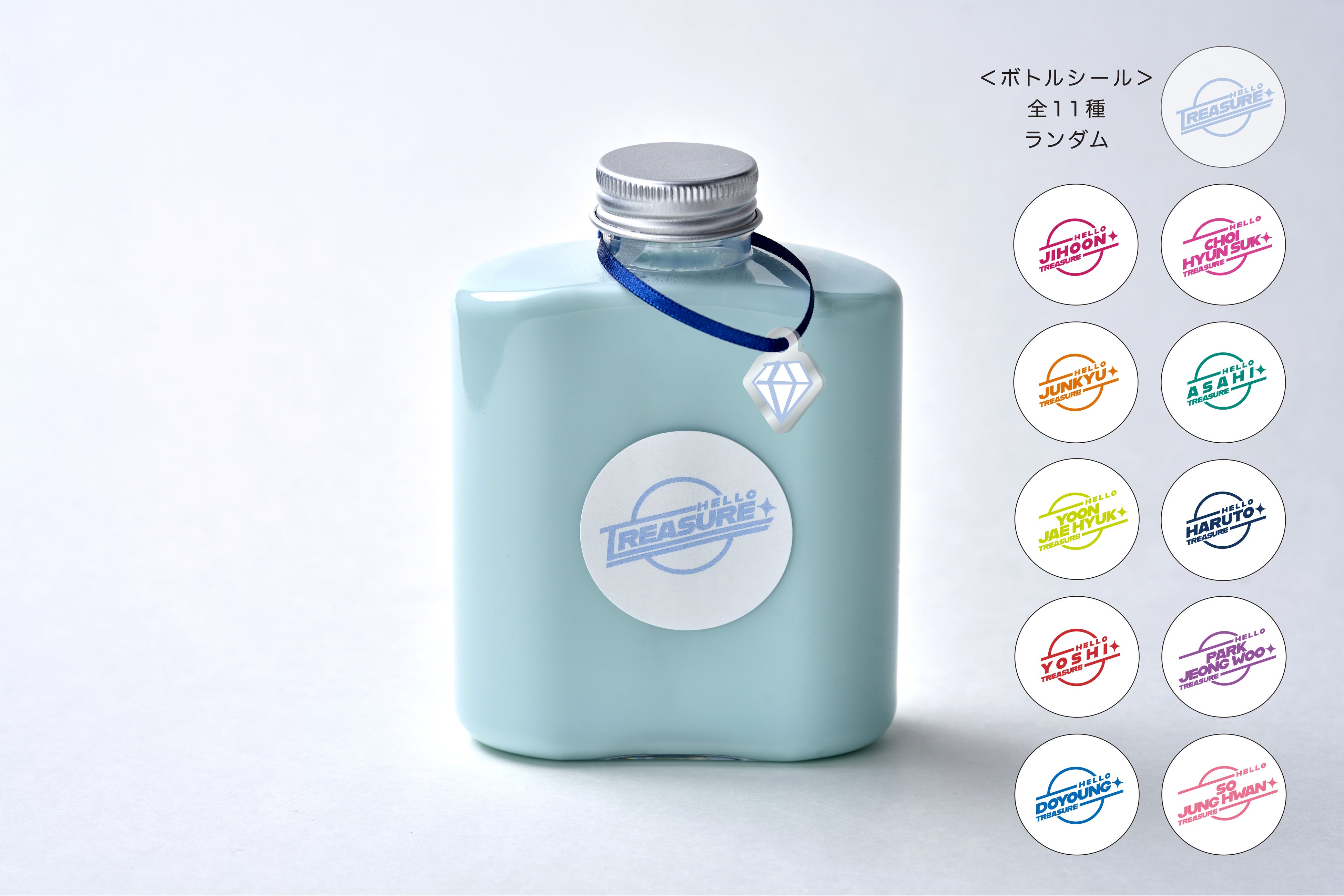 イメージカラーのブルーを表現した、カルピスミルク味のコールドドリンクです。ボトルシールは、ロゴやメンバーネームなど全11種からのランダムです。ダイヤ型アイコンをモチーフにしたアクリルタグ付き。
