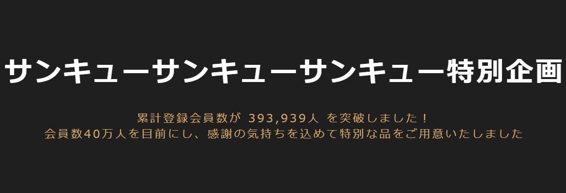 サンキューサンキューサンキュー特別企画!うまいもんドットコムの累計登録会員数が 393,939人 を突破しました