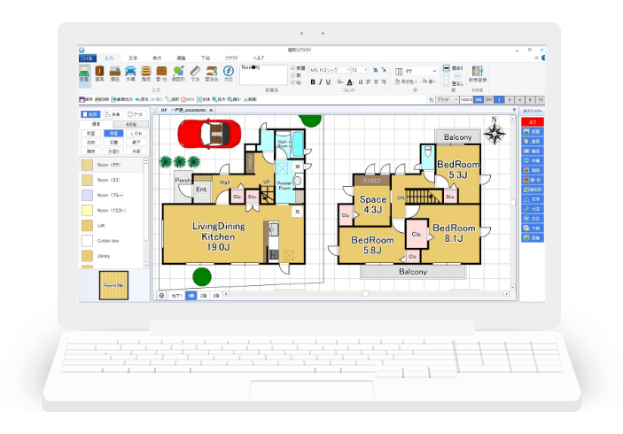 「間取りクラウド」は高い表現力と機能性をそなえたWindows パソコン用の間取り図作成ソフトです。ほとんどの作業をマウス操作で行えるため、素早く簡単に間取り図が作成できます。基本操作さえ覚えれば、ワンルームなら約15分、分譲マンションや戸建住居でも20~30分程度で作図可能です。