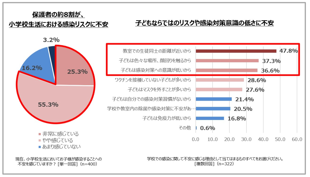 保護者の約8割が、小学校生活における感染リスクに不安