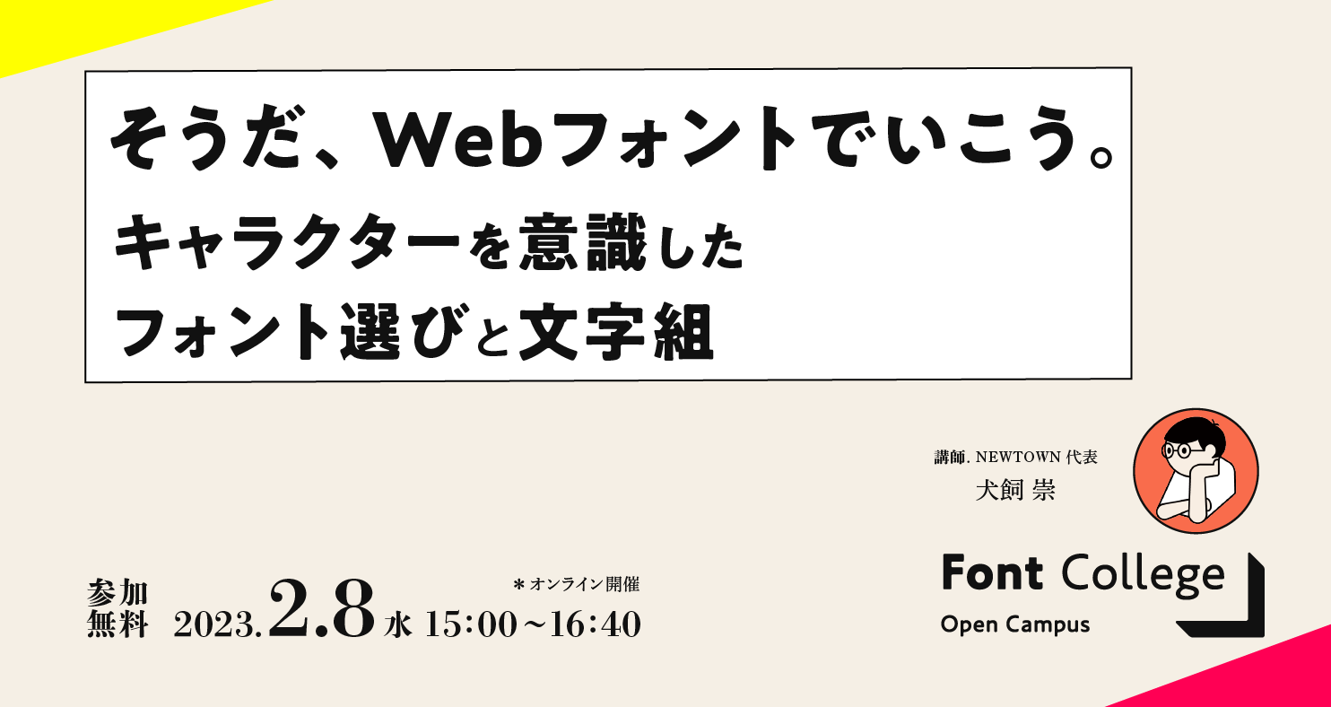 【オンライン開催】Font College Open Campus 6限目 「そうだ、Webフォントでいこう。キャラクターを意識したフォント選びと文字組」