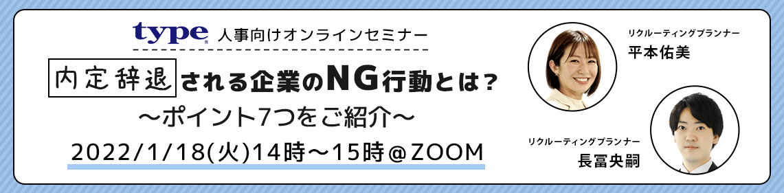 <無料オンラインセミナー>内定辞退される企業のNG行動とは?~ポイント7つをご紹介~/2022年1月18日(火)14時~開催