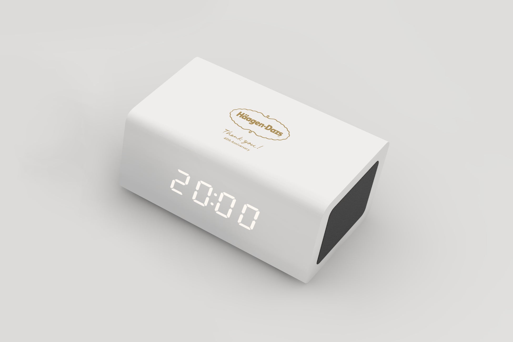 ハーゲンダッツロゴが印字された、3機能(デジタル時計・Bluetoothスピーカー・ワイヤレス充電)付きのオリジナルクロックです。