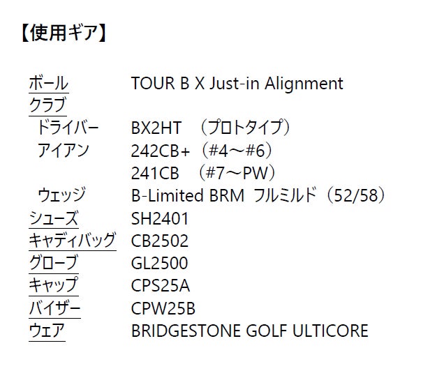 このたび、3年連続の賞金王を獲得できたことを、大変光栄に思います。今季は4勝を挙げることができ、1年間を通じて自分らしいゴルフを貫けたシーズンでした。その要因は、飛距離と方向性を兼ね備えたドライバー「BX2HT」の性能とボール「TOUR B X」の飛んで止まる性能が大きく貢献してくれたからだと思います。また、日頃から応援してくださるファンの皆様、支えていただいているスポンサー各社の皆様、そしてチームスタッフや家族のサポートがあってこそ、この結果につながったと心から感謝しています。