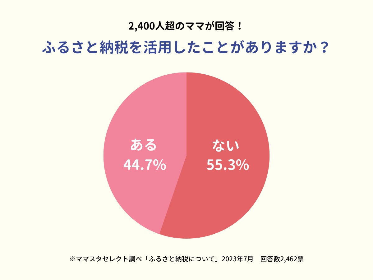 2,400人のママたちが回答!およそ5割のママが「ふるさと納税を活用したことがある」と回答。人気の返礼品は?