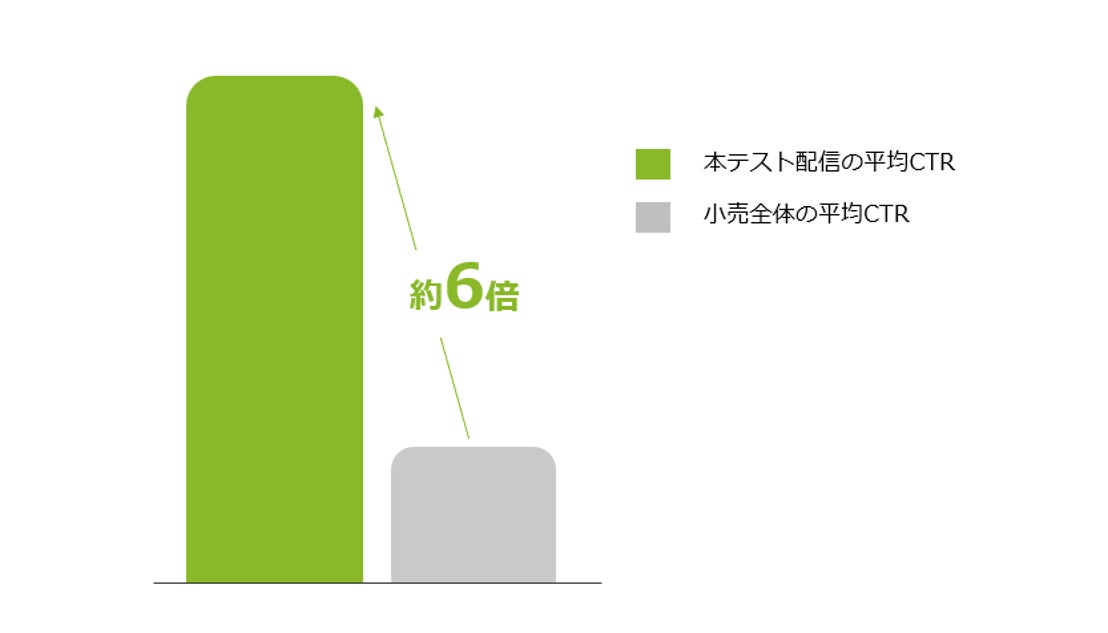 効果検証の結果、「コンテクスト広告」を用いたテスト配信において、同業種(小売業)全体における平均CTRを大きく上回る結果になりました。