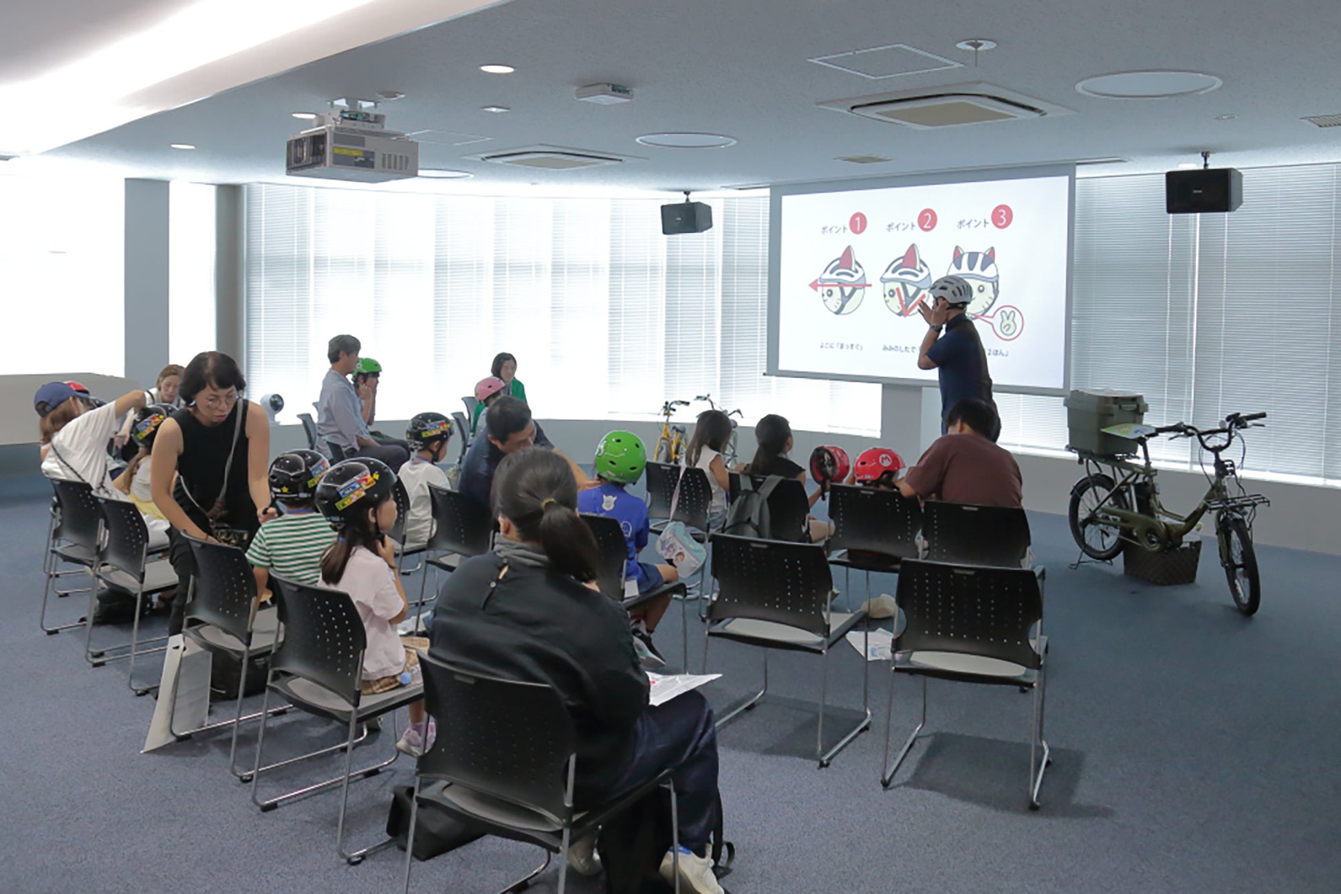 夏休み期間中にお子様とそのご家族を対象として、自転車の安全な乗り方と交通ルール・マナーを楽しく学ぶことを目的に、紙芝居やクイズ形式での交通安全教室を開催いたします。
