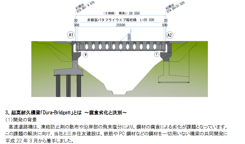 令和3年6月には、「Dura-Bridge®」で得られた知見を応用し、鉄筋やPC 鋼材などの鋼部材を一切用い