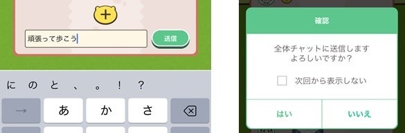 全体チャットまたはグループチャットにメッセージを送信できます。全体チャットにメッセージを送信する場合、誤送信防止のため送信確認が表示されます。