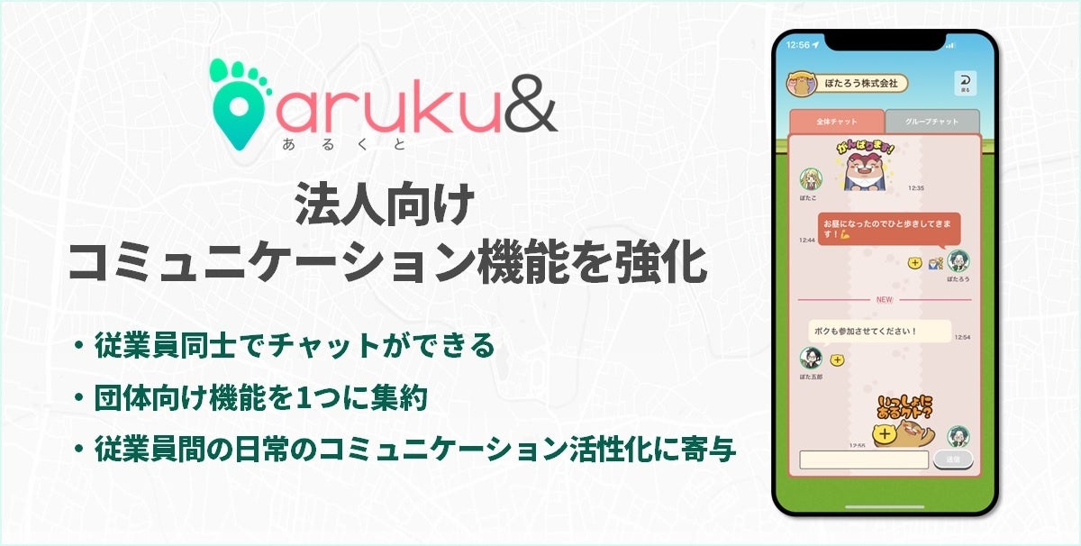 ウォーキングアプリ「aruku&」、法人向けコミュニケーション機能を強化