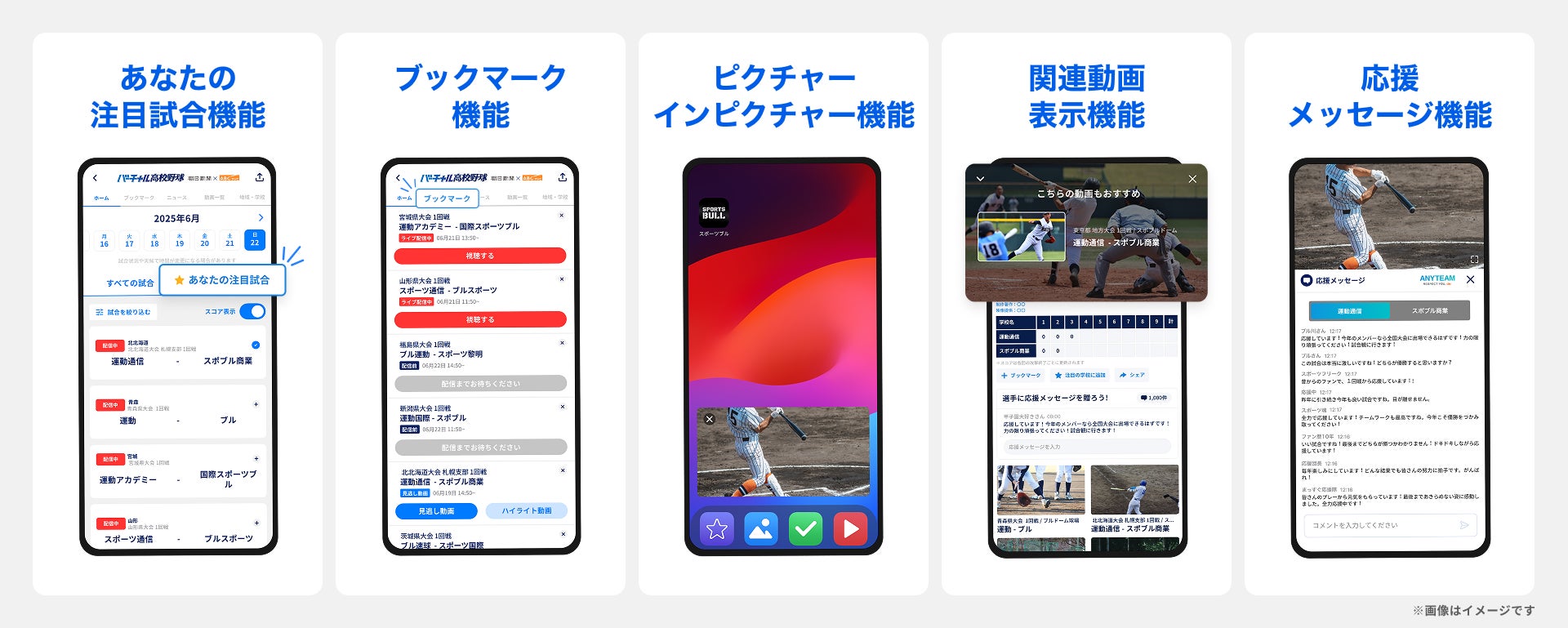 今年も全49地方大会の配信が予定されていることから、多くの試合が同時に配信されていても母校や注目校の試合に迷わず辿り着ける機能や、見逃した試合を後からでも簡単に視聴できる機能など、動画視聴を快適に楽しめるスマホアプリ限定の4つの機能を搭載しました。
