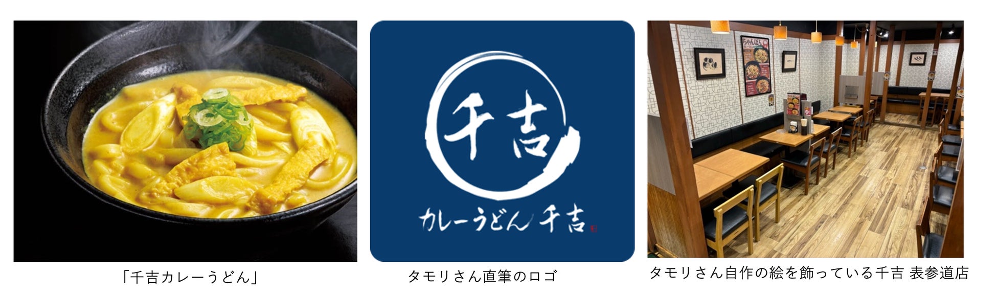 カレーうどん専門店 千吉は吉野家ホールディングス100%子会社の株式会社スターティングオーバー(本社:東京都中央区、代表取締役社長:荒木裕伸)が運営するブランドです。看板メニューとなる「千吉カレーうどん」は、商品を開発した際、フランスで長年修行を積み5つ星ホテルの副料理長を務められたシェフと、シェフと友人関係にあったタモリさん(森田一義さん)がレシピの原型を考案しました。その後も商品開発を続ける中、シェフからスパイスの香りの立て方や出汁の配合、味のまとまり具合などについて細やかに指導を仰ぎました。シェフとタモリさんが美味しいと納得した味を商品化して一号店をオープンする際には、タモリさん自ら千吉のロゴを書き上げ、店内に飾るために自作の絵を提供くださいました。現在も千吉(※2)はこのロゴを用いており、タモリさんが提供してくださった絵は千吉 表参道店に飾られています。