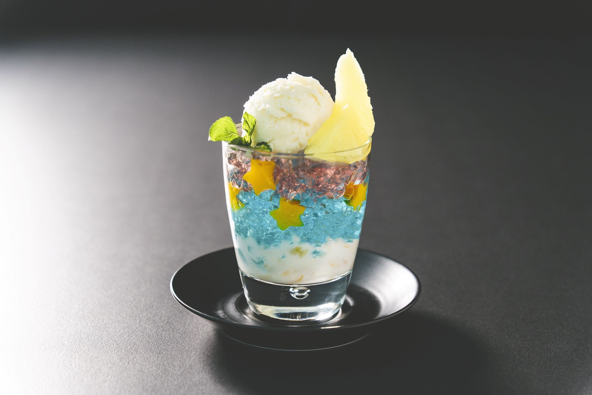 日本橋・夏の宇宙イベント「月面ワンダー~日本橋に月をつくってみた~」 涼やかな夏の夜空をイメージした にんべんの「星空パフェ」 「日本橋だし場 はなれ」にて7月20日新発売