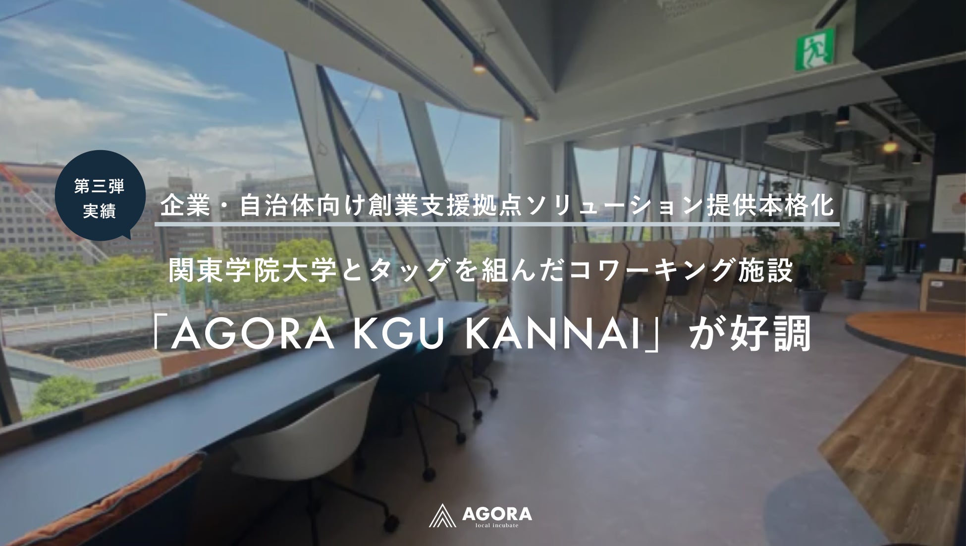 コワーキングスペース運営や創業支援を行う株式会社AGORA(以下「AGORA」、本社:東京都町田市、代表取締役社長兼CEO・長谷部 信樹)は、関東学院大学(本部:横浜市金沢区、学長:小山 嚴也)が、AGORAのコワーキング施設立ち上げ・運営支援パッケージを導入して横浜・関内キャンパス内に新設したコワーキング&シェアオフィス「AGORA KGU KANNAI(読み:アゴラ ケージーユー カンナイ)」がオープンから1年半が経った現在、契約者数が前年比10倍へと伸長しているほか、地元横浜の民間企業との「地域連携」も強化し、これまでに累計8社との取り組みを達成するなど、好調に成長していることをお知らせします。