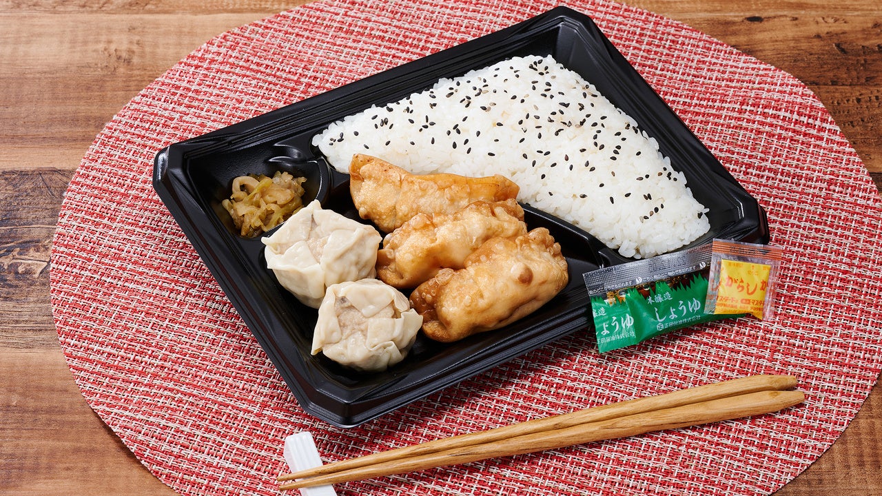 人気中華料理チェーン「大阪王将」の揚餃子と焼売をつめたお弁当です。