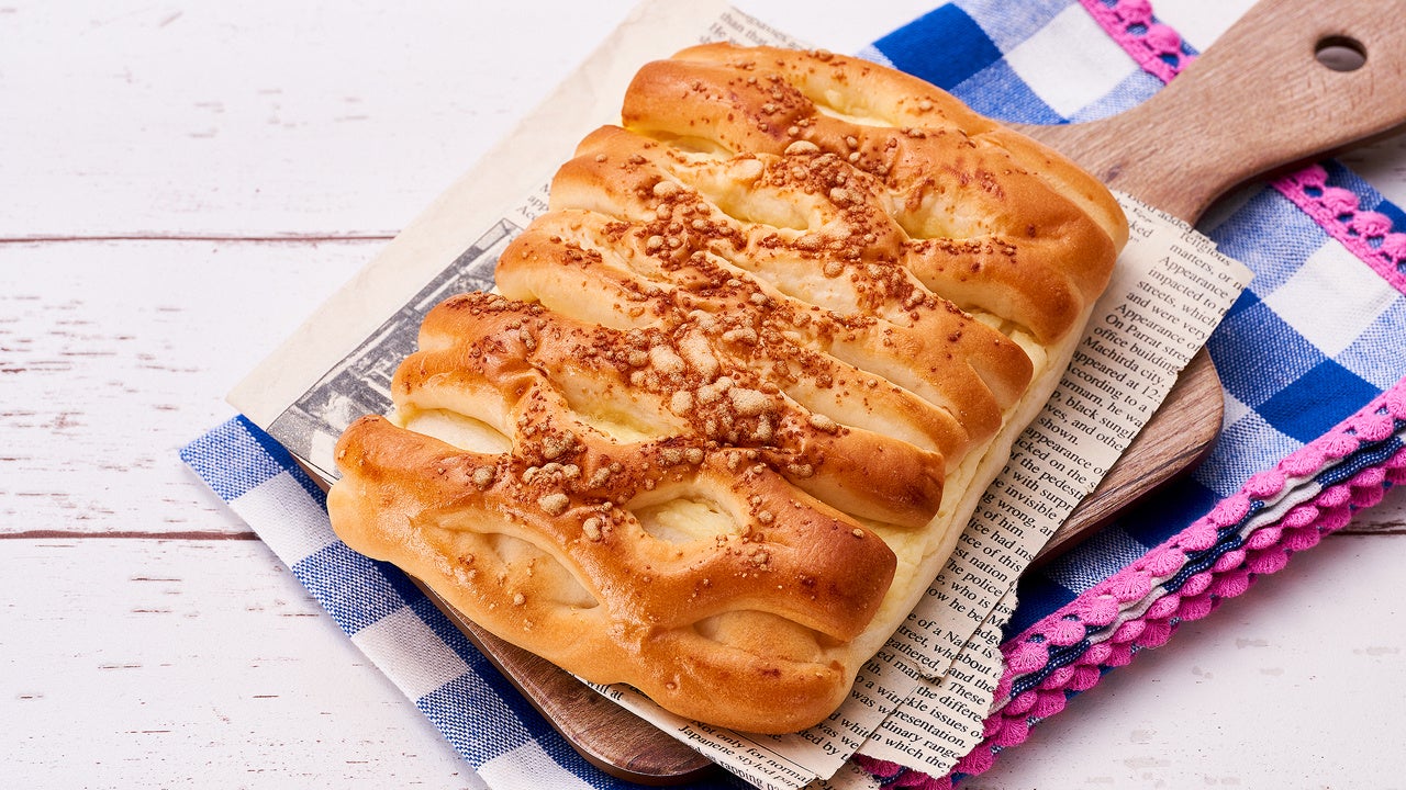 ゴーダチーズ入りのチーズクリームを包み、パウダーチーズをかけて香ばしく焼き上げました。
