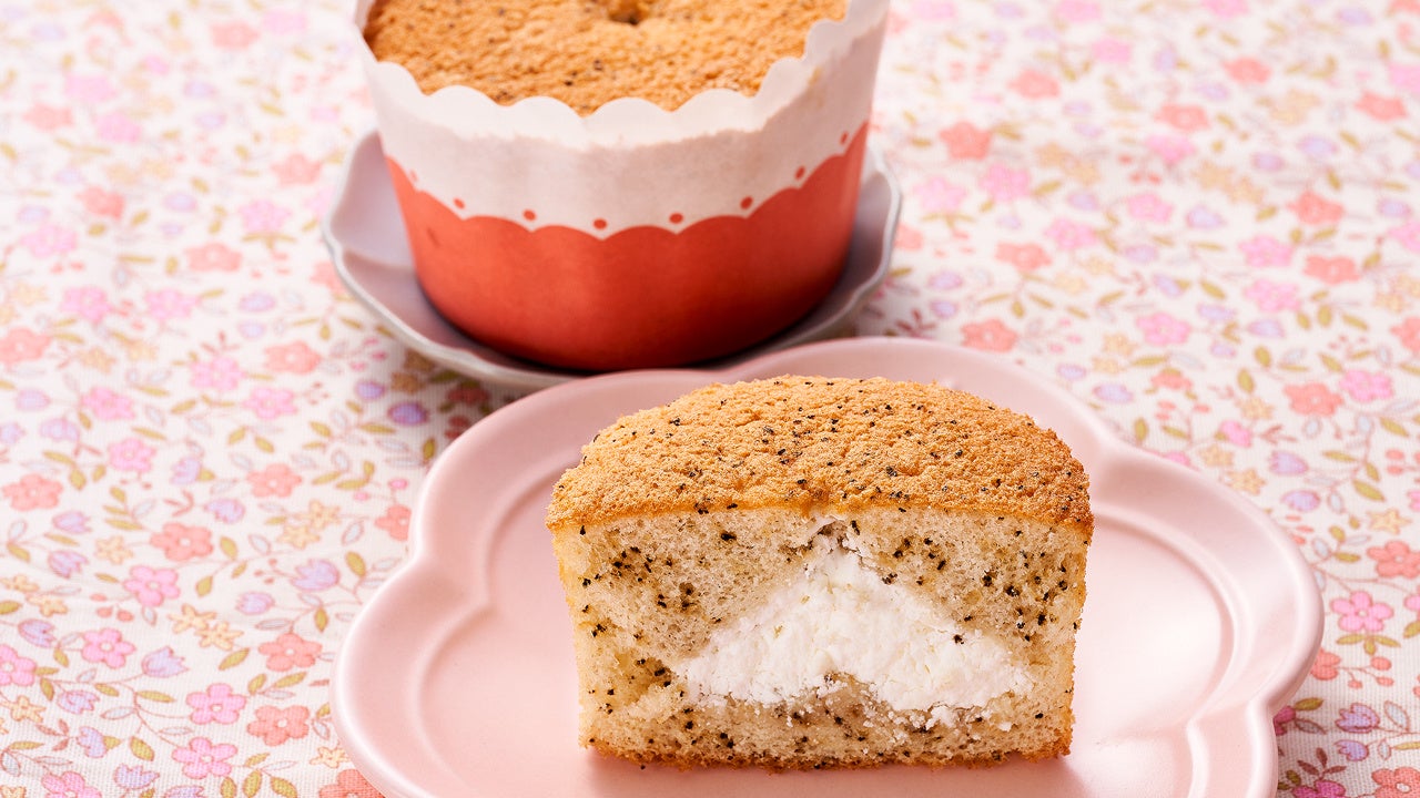 紅茶風味のシフォンケーキに、ミルキーなホイップクリームを入れました。