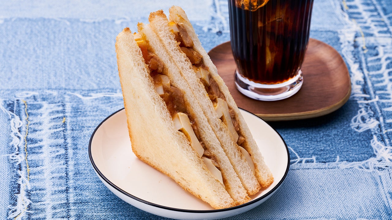 甘辛の照焼チキンとゆで卵をサンドしたホットサンドです。
