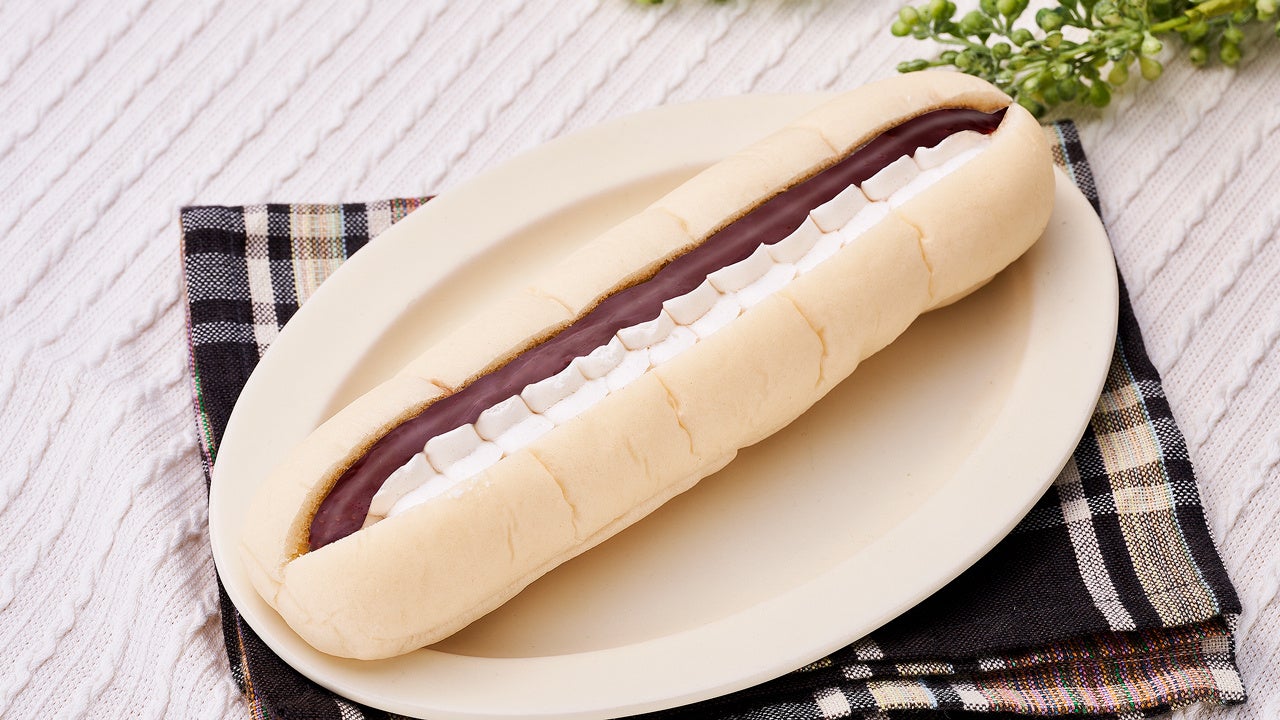 ふわふわ食感の白いロールパンに、濃厚なチョコクリームとミルク風味ホイップをサンドしました。