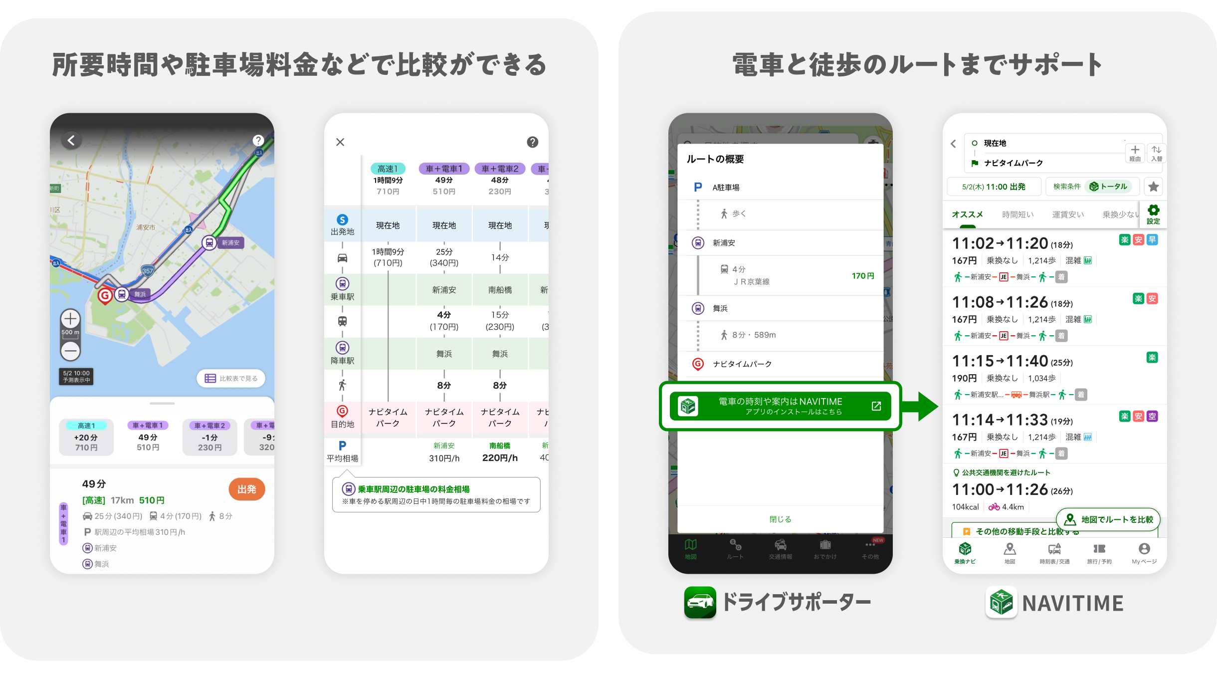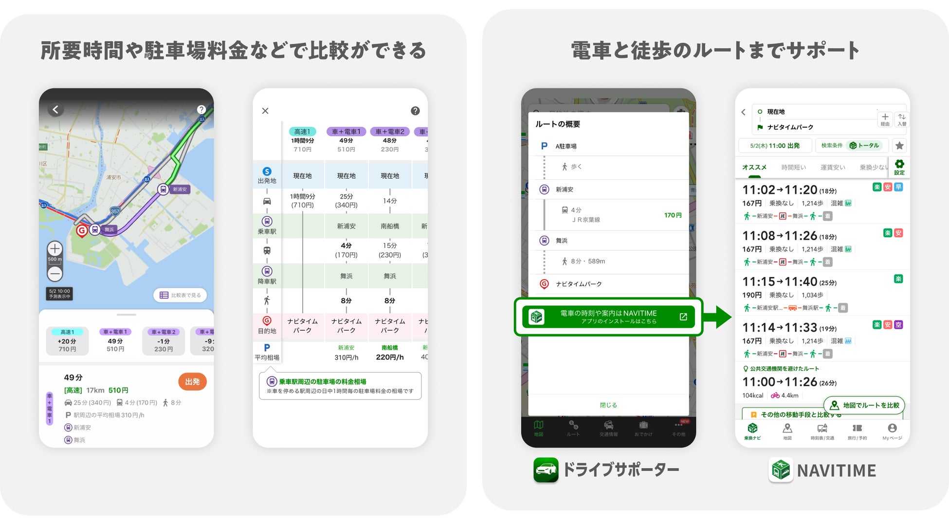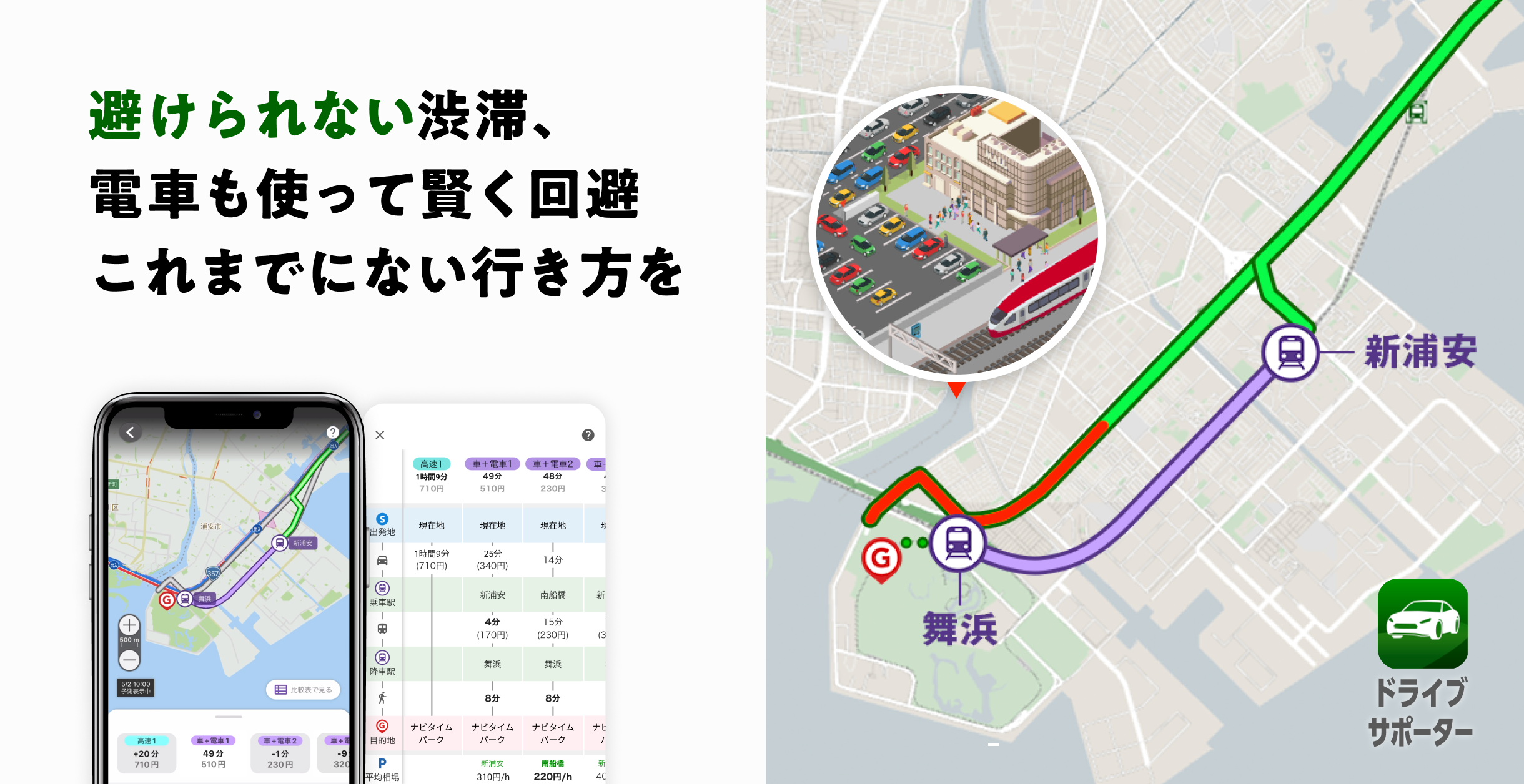 『NAVITIMEドライブサポーター』電車に乗り換えて、目的地周辺の渋滞を回避する「パークアンドライドルート」機能を提供開始