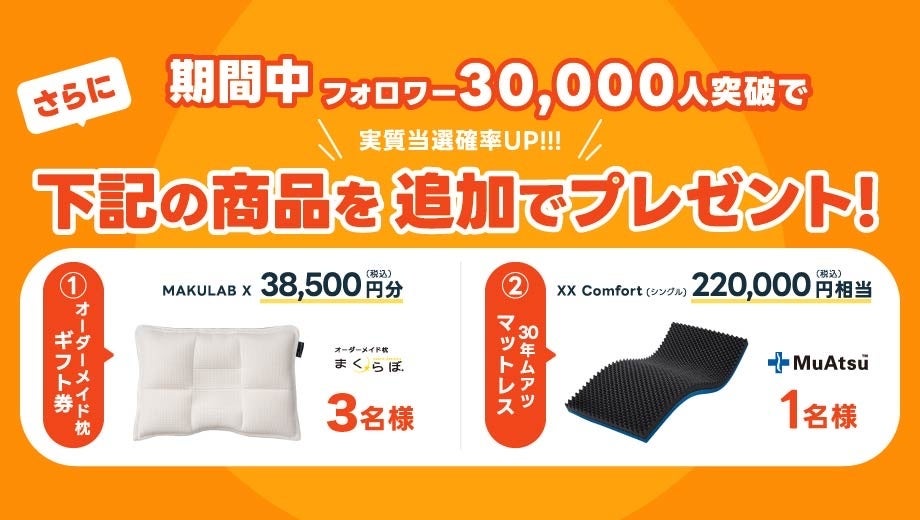 さらに!キャンペーン期間中にフォロワー3万人突破した場合、景品を追加!