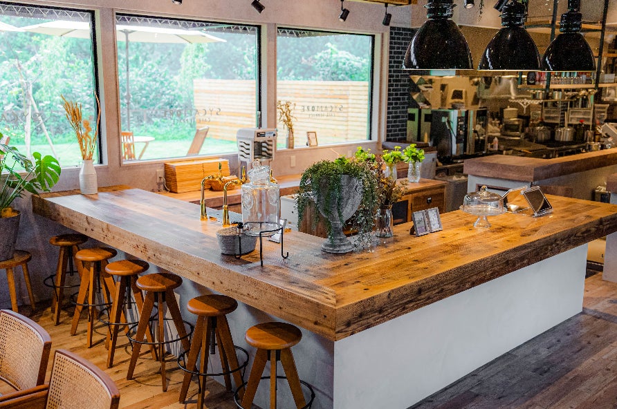 SUMI TERRACE 森のヴィレッジの最も大きな魅力の一つは豊かな自然。森のカフェテラス「シカモア カフェテラス」は、街の喧騒を離れ、自然に囲まれた環境で「こんなカフェテラスでのんびりしたい!」をカタチにしました。地元の新鮮な卵を使用した料理、群馬県のブランド魚「ギンヒカリ」のオープンサンド、シェフがオリジナルの配合で丁寧に焼き上げる米粉を使用したパンケーキなど、朝食やブランチ、ティータイムなどお好きなシーンで、「シカモア カフェテラス」ならではの贅沢なひとときをお楽しみください!