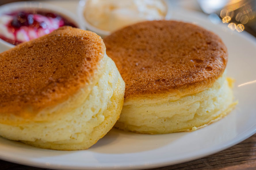 拘りの米粉を使用したパンケーキ。1枚1枚丁寧にじっくり焼き上げたパンケーキは、サクサクふっわっふわ!