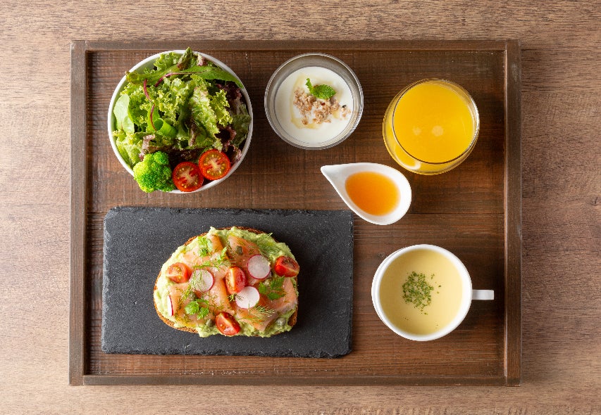 ギンヒカリのオープンサンド 2,178円(税込) / ミニサラダ、スープ、ヨーグルト、オレンジジュース付き