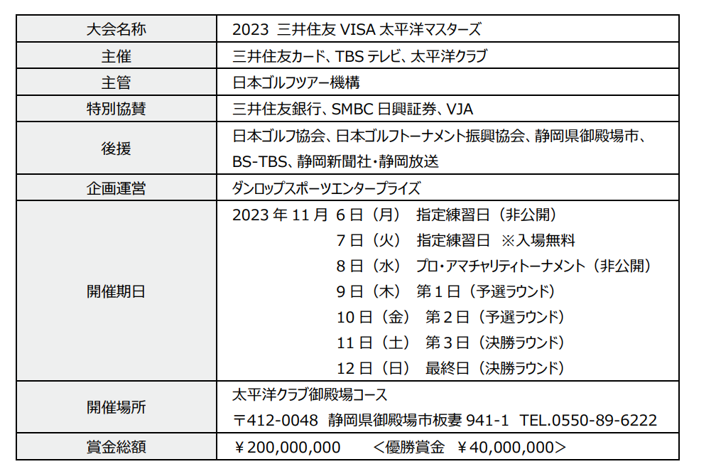 2023 三井住友VISA太平洋マスターズ開催および石川遼選手の大会アンバサダー就任のお知らせ
