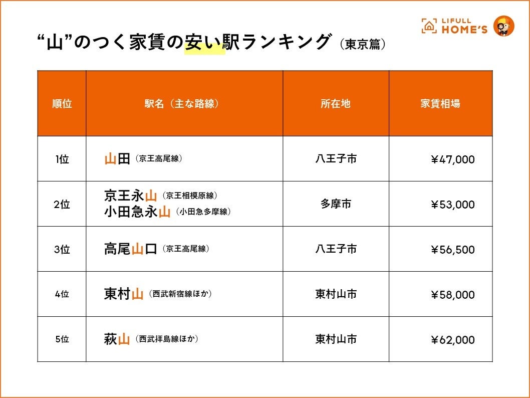 8/11は「山の日」! LIFULL HOME'S発表「“山”がつく家賃の高い/安い駅」ランキング(東京篇)