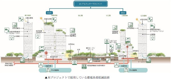 また、標準的な建物のCO2排出量に対し、削減率35%以上を目標に掲げ、以下のような環境負荷低減技術を採用しています。