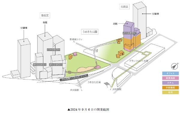 先行まちびらき(北街区のホテル・中核機能施設・商業施設およびうめきた公園(サウスパーク(南公園)全面およびノースパーク(北公園)の一部)