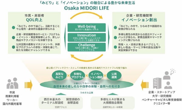 「まちでの出会いが、様々な価値を創造し、持続的にみんなと社会全体を良くしていく」こと。これがグラングリーン大阪の目指すまちづくりです。