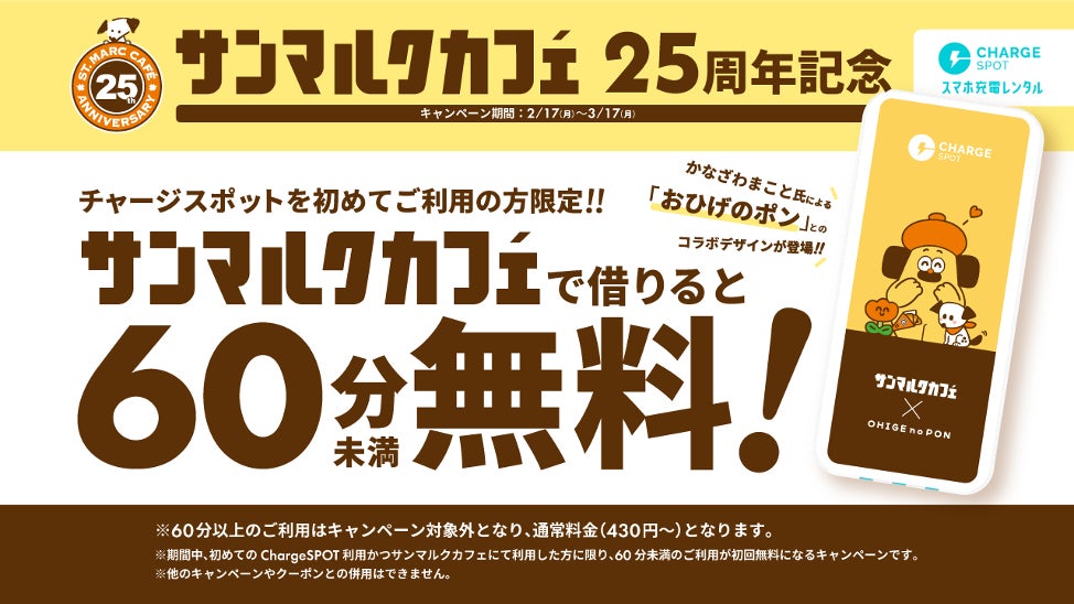 「ChargeSPOT」✖️サンマルクカフェ25周年記念キャンペーンを2月17日(月)より実施