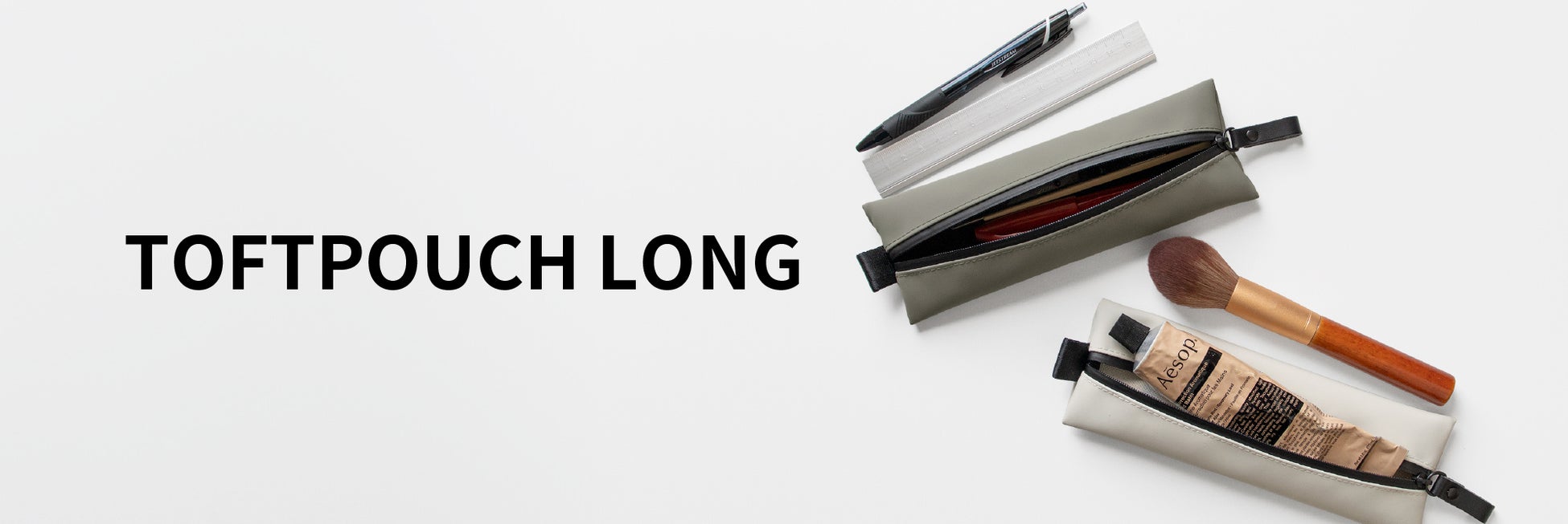 ペンケースにも使えるロングサイズ。ファスナーを開けるだけで中身を一覧できるので、