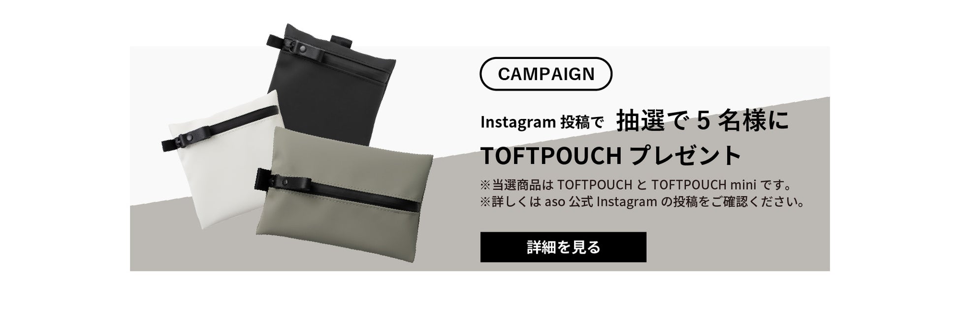 asoで人気のTOFTPOUCHシリーズに新サイズ4型が登場することを記念した「TOFTFESTA(タフトフェスタ)」を開催中。