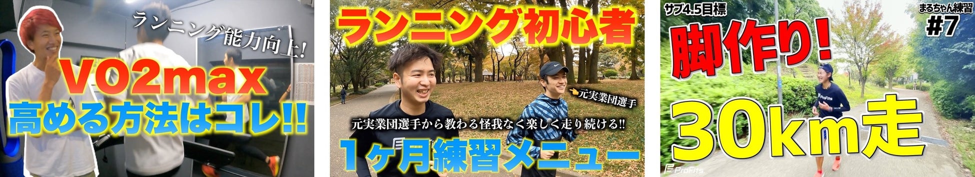 このチャンネルは、スポーツケア用品ブランド「プロ・フィッツ®」の担当者が、自らマラソンに挑戦しながらランニングに関する有益な情報や商品情報を発信するチャンネルです。ランニングコーチ林貴裕氏の指導を受けながら、ランニングの基本からアスリートが行う練習方法まで、幅広くランニングのメソッドを配信しています。マラソンに初挑戦する初心者ランナーや、走力を高めたい中~上級者ランナーにご視聴頂いています。プロ・フィッツ担当者がトップランナーの行うハードな練習メニューに挑戦する様子に、視聴者からは「メニューを真似して私もやっています。マジできつい」などのコメントが寄せられています。