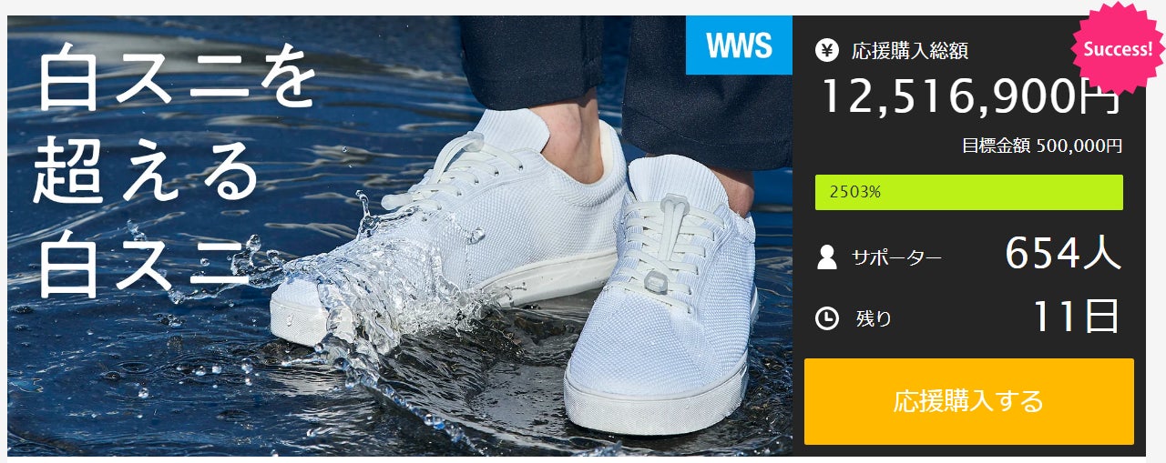 - 雨でも履けて、洗濯機で洗える「白スニを超える白スニ」が目標金額2500%達成。4/10 18:00までMakuakeで先行販売