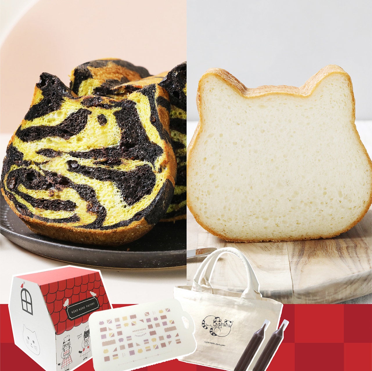 2022年の干支“寅”をモチーフにしたオンライン限定フレーバー「ねこねこ食パン とら」をはじめ、1番人気の「ねこねこ食パン プレーン」とねこねこグッズをセットで販売いたします。
