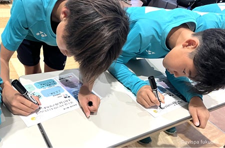 新日本製薬 株式会社(本社:福岡市、代表取締役社長CEO:後藤孝洋)は、アビスパ福岡株式会社(本社:福岡市、代表取締役社長:結城耕造)と、アビスパ福岡アカデミー生の夢を応援する企画を実施しました。当日は、「七夕」にちなみ、アカデミー生124名にアビスパ福岡の監督や選手直筆の応援メッセージ付き七夕カードをプレゼントし、それぞれの夢や願い事を書いてもらいました。