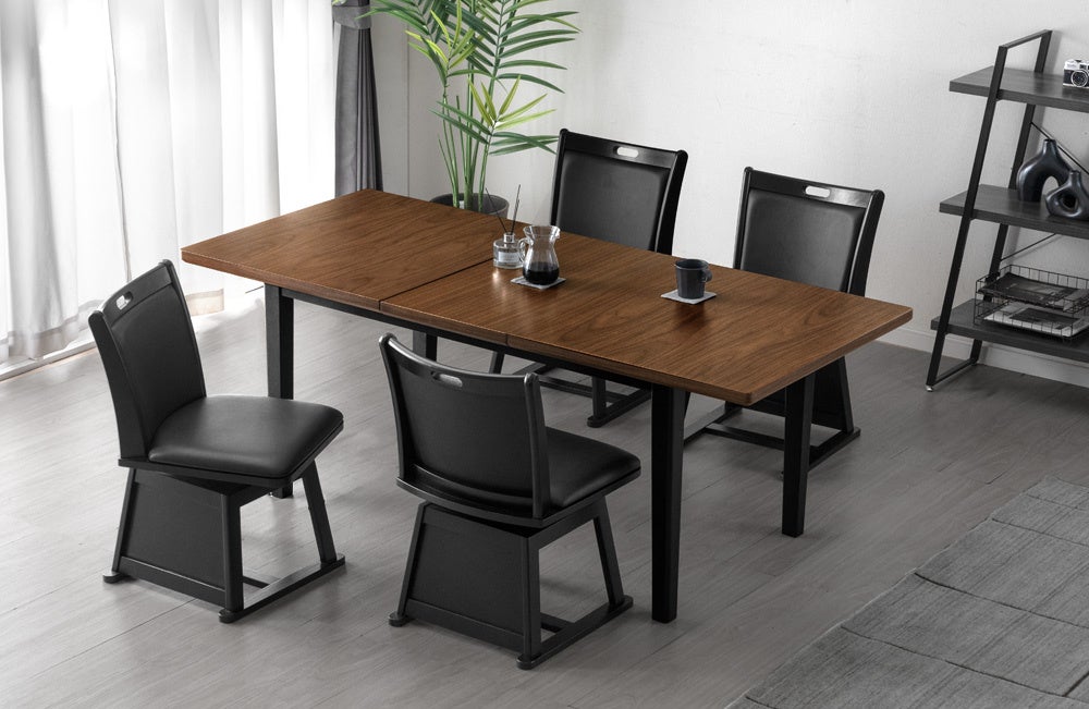 伸縮サイズは、140×80cmの4人掛けサイズから、180×80cmの大人数仕様まで対応しており、家族の人数や来客時に合わせて調整することができます。