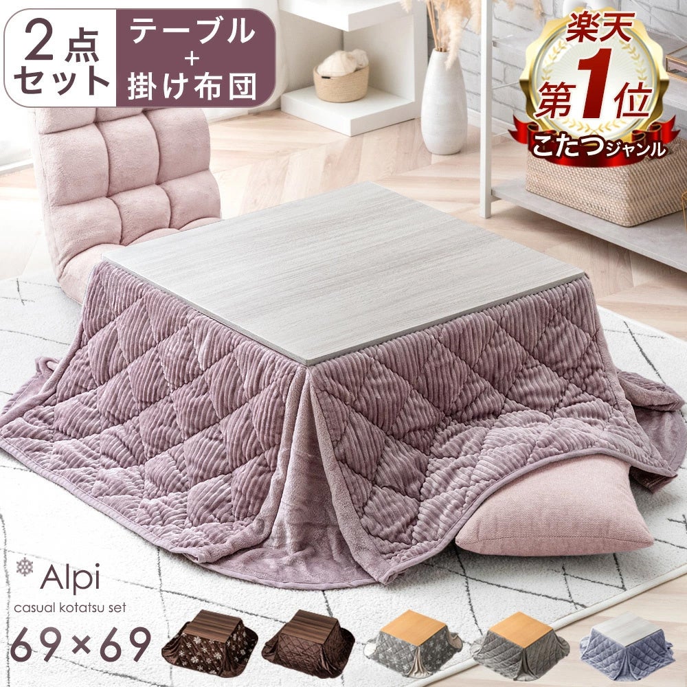 アルピシリーズは、テーブルに暖かいコーデュロイ生地のこたつ布団がセットになった商品で長方形・正方形などのサイズ展開があります。