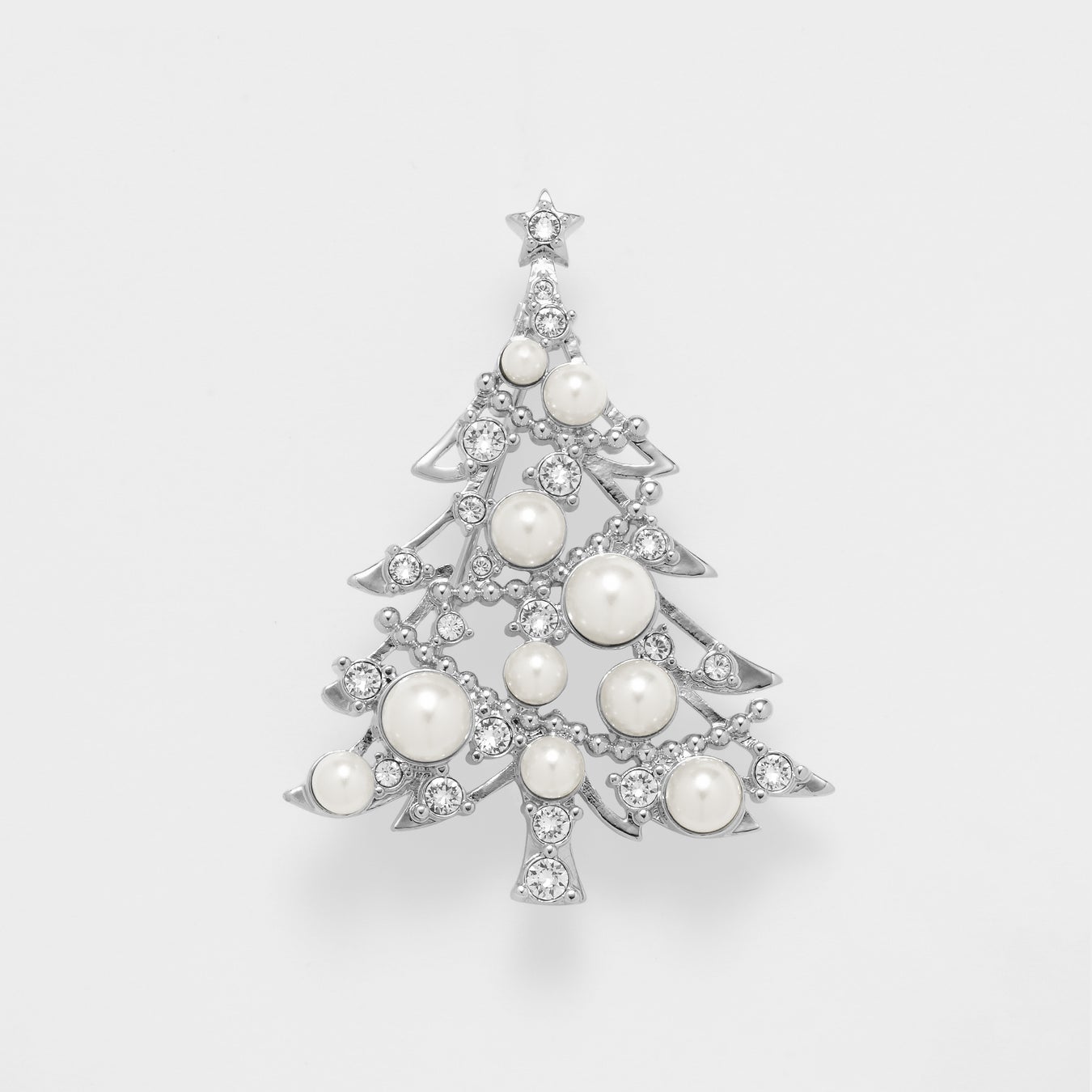 ふんわりとツリーに降り積もる雪を、パールで表現したロマンティックなデザインです。上品なパールの艶に、カットガラスの華やかな輝きが、エレガントな大人のクリスマスを演出。